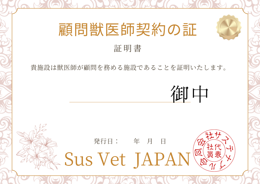 「Sus-Vet JAPAN」による評価証を発行します。企業のSDGs活動やワンヘルスへの取り組みを証明するエビデンスとしてご活用いただけます。